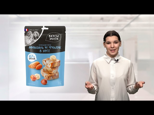 Состав: миндаль цельный, фундук цельный, мед, сахар, сухие яичные белки.